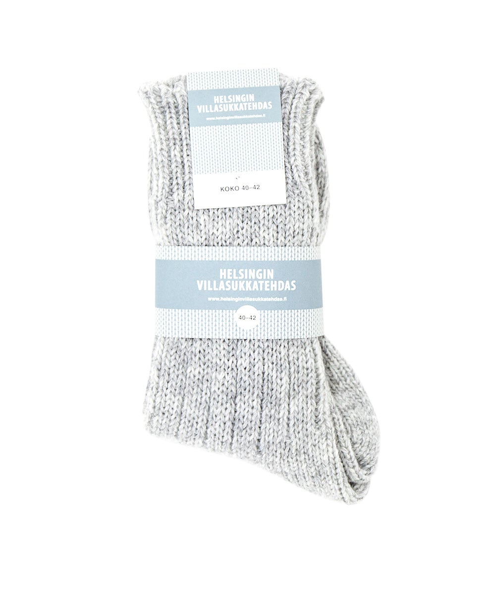 Kotimaiset villasukat ovat lämmin ja perinteinen valinta ympäri vuoden. Villa hengittää luonnollisesti, siirtää kosteutta ja pitää jalat lämpiminä myös viileinä päivinä. Jäkälänharmaa väri on rauhallinen ja luonnonläheinen sävy, joka sopii erinomaisesti arjen käyttöön sekä lahjaksi. Jokainen pari valmistetaan Helsingin Villasukkatehtaalla tarkkaan käsityöhön ja laatuun panostaen.